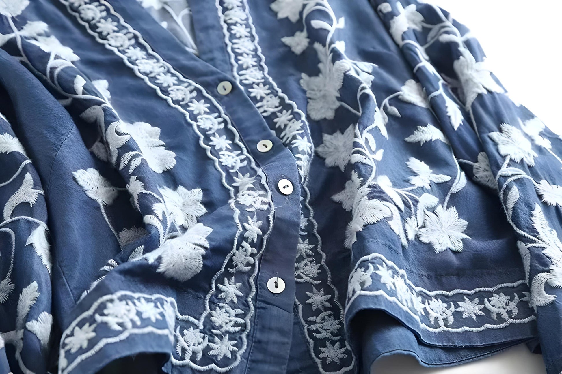 Welcome the season in our Boho Denim Bloom, featuring delicate embroidery and a relaxed drop-shoulder silhouette for effortless style. Its soft, lightweight denim blend layers beautifully over tees or dresses, adding an instant bohemian touch to any look.